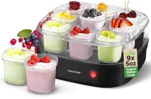 9 Cup Automatic Yogurt Maker | Includes 9 - 5 oz Reusable Cups with Lids & Yogurt Rack for Instant Storage | Makes up to 45 OZ of Yogurt | Greek Yogurt Maker | Space Saving design | Black