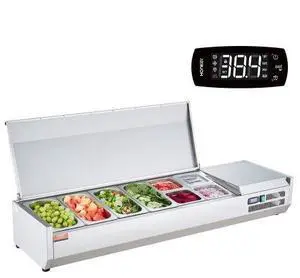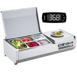 VEVOR Refrigerated Condiment Prep Station, 130 W Countertop Refrigerated Condiment Station, with 1 1/3 Pan & 4 1/6 Pans, 304 Stainless Body and PC Lid, Sandwich Prep Table with Stainless Guard, ETL