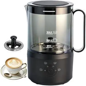 Milk Frother, 4-in-1 Electric Milk Steamer(10oz/300ml)Automatic Hot and Cold Foam Maker for Iced Coffee, Lattes, Cappuccinos & Macchiatos, Non-Stick Interior, Black.