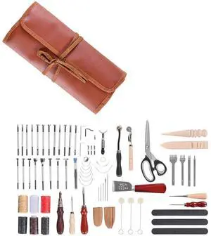 Leather Working Tools Kit 72 PCS Engraving Punching Stamping Sewing Tools