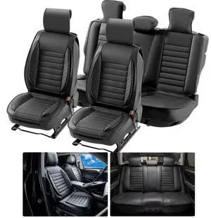 VEVOR Seat Covers, Universal Car Seat Covers Full Set Seats, Front and Rear Seat, 9pcs Faux Leather Seat Cover, Semi-enclosed Design, Detachable Headrest and Airbag Compatible, for Most Car SUV Truck