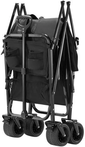 Double Decker Wagon Collapsible, 400L Heavy Duty Folding Wagon Cart, Extended Long Garden Cart with All-Terrain Wheels, Support Up to 450lbs, Outdoor Utility Wagon for Camping, Sports, Shopping
