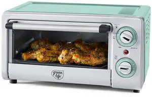 by Maximatic Americana Collection ETO147M Diner 50s Retro Countertop Toaster oven, Bake, Toast, Fits 8 Pizza, Temperature Control & Adjustable 60-Minute Timer 1000W, 2 Slice, Mint