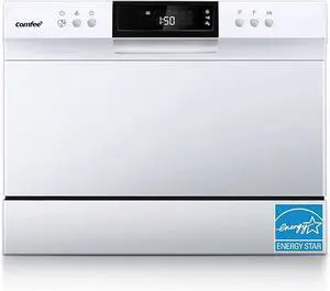 COMFEE Portable Mini Dishwasher, Energy Star, Countertop, 6 Place Settings, with 8 Washing Programs, Speed, Baby-Care, ECO& Glass, Dish Washer for Dorm, RV& Apartment, White