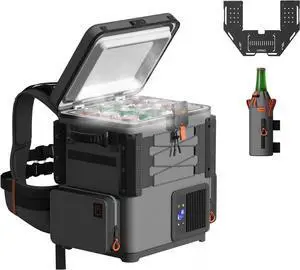 Wild 12V Car Refrigerator & Portable Electric Cooler with Cup Holder and Tabletop, 20L/21QT Backpack Design, -4~68 Travel Freezer for Camping, RV, Boat&Beach(Without Battery)