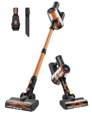 momax Vacuum Cleaner for Home  Cordless Stick Vacuum with Powerful Suction, Rechargeable, Lightweight, 45 Mins Runtime for Carpet, Hard Floors, Pet Hair, Cat Litter (Orange & Black)