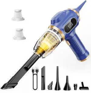 Car Vacuum Portable Cordless 17000Pa Cordless Mini Handheld Vacuums with LCD Display and Multi-Nozzles, High Power Wet and Dry for Car, Home, Office, Pet, Compact and Portable Design (Blue)
