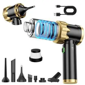 Car Vacuum Portable Cordless - Handheld Vacuum Cleaner with 16000PA Strong Suction, 7-in-1 Air Duster/Blower, Rechargeable Mini Vacuum with Long Battery, Multi-Nozzles for Car,Home, Office, Pet