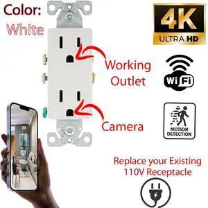 Jovision USA HD 4K Power Outlet Spy Camera Covert Receptacle AC DC Hidden Camera (White/Square)