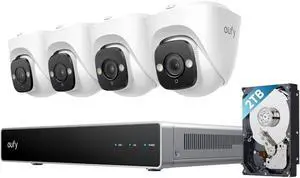 eufy PoE NVR Security System E41,24/7 Recording,Up to 16CH, 2TB HDD, 4 4K Turret Cams, Wired Outdoor Cam, 4K UHD, 122° FOV, Color Night Vision, AI Detection, Red and Blue Strobe