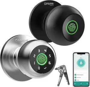 GHome Smart Fingerprint Door Lock, Smart Finger Print Door Knob with App Control & Key, Auto Lock, Biometric Thumbprint Door Locks for Front Door, Bedroom, Garage, Home & Office