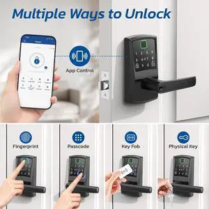 Smart Door Lock with Handle Keyless Entry Door Lock for Front Door -Fingerprint Digital with Keypad-Biometric for Home, Apartment, Office