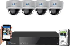 Gadpiparty GW Security 8 Channel 4K NVR 5MP H.265 IP Surveillance Security Camera System with 4-Piece Super HD 1920P Weatherproof Video & Audio Microphone PoE Security Dome Cameras