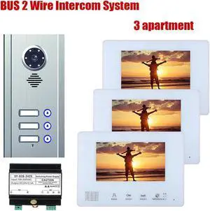 7inch TFT LCD Indoor Screen Monitor 2pin Wired Video Door Phone Visual Intercom systems Doorbell Kit for Villa Outdoor Station home 1 Units Apartment Night Vision Door Bell, 1 doorbell + 3 monitor