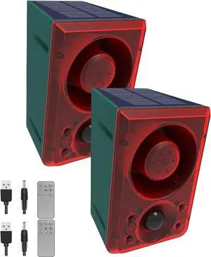 HULPPRE 2pack Solar Outdoor Motion Sensor Alarm-Dog Barking or Gunshot Sound,Support Recording&±Volume,130db Loud Noise Maker,3 Work Modes Strobe Light with USB,Say Goodbye to The Intruders