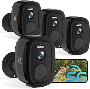 2.4G/5G WiFi Security Cameras Wireless Outdoor, 2K Home Security Camera with AI Motion Detection, Color Night Vision, IP66 Waterproof, 2-Way Audio, Siren, SD/Cloud, Works w/Alexa&Google Assistant 4PC