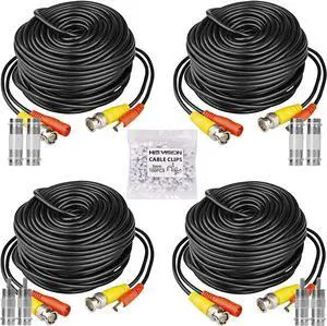 BNC Cable 200ft 4 Pack Aimyzii BNC Video Power Cable,All-in-One Video Security Camera Cable for CCTV Camera DVR Security Systems(Included 8X BNC Adapters,100 Pcs Cable Clips)-Black