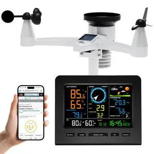 Wireless WiFi Weather Station Anemometer with Solar Wind Speed/Direction, and Indoor Outdoor Thermometer and Hygrometer