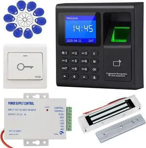 Waterproof Fingerprint Door Access Control System kit, Includes a 1200LB Magnetic Lock,RFID keypad, remotes, exit Button, Entry keypad, and a 110V AC to 12V DC Power Supply (Fingerprint-1200LB Kits)