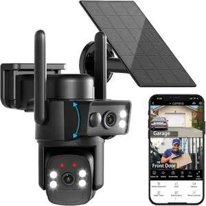Dual Lens Solar Security Cameras Wireless Outdoor, 360° View Pan/Tilt Home Security Camera with 6MP Color Night Vision, 5GHz/2.4Hz WiFi 6, PIR Motion Detection, Spotlight Siren, 2-Way-Audio