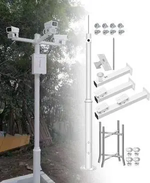 Adjustable Security Camera Mount, Easy Assemble & Disassemble Modular CCTV Pole, Metal Surveillance Camera Stand, 6.6 to 19.7ft Height Options for Outdoor Use.