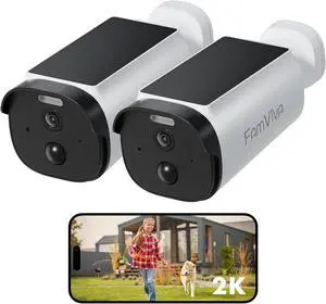 Solar Security Cameras Wireless Outdoor, 2K/3MP Battery Powered Camera with Integrated Solar Panel, AI Motion Detection, Color Night Vision, 2-Way Audio, IP65 Waterproof,2 Packs.