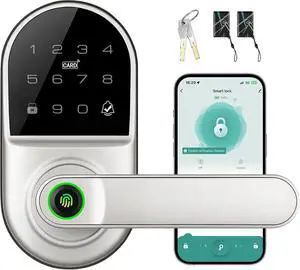 Smart Door Handle Lock with Keypad, Leydebong Fingerprint Smart Knob - Electronic Lock with Code, IC Card, App Control for Front, Interior, Exterior & Bedroom Door - DIY Installation