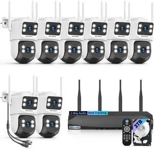 2-Way Audio & Auto Tracking 4MP PTZ Security Cameras Wireless Outdoor, Wireless Outdoor Security Camera System, Home WiFi Video Surveillance DVR Kits