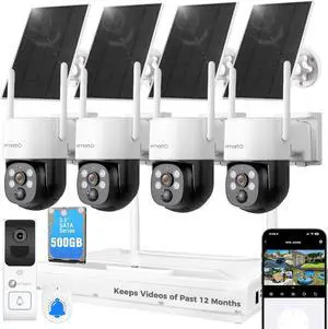 xmartO [Doorbell + 4-CAM] Wire-Free Solar Security Camera & Smart Doorbell Set - 4Pcs 2K QHD PTZ Cam & 4K 10CH Expandable WiFi NVR (Past 120-day Storage) & 2.4G/5G Dual Band Doorbell, No Monthly Fee