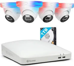 Swann 1080p HD Security Camera System, 8-Ch White DVR with 1TB HDD, 4 Indoor/Outdoor Wired Dome Cameras, 24/7 Home Surveillance, Color Night Vision, Weatherproof, True Detect