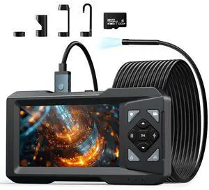 Endoscope Camera with Light - Industrial Borescope with 32GB Card, Waterproof Inspection Sewer Camera, 16.4FT Snake Semi-Rigid Cord Endoscope Compatible with PC & Android for HVAC, Plumbing