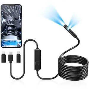 Acoath Endoscope Camera with Light, Dual-Lens 1920P HD Borescope with 8 Adjustable LED Lights, IP67 Waterproof Boroscope Inspection Tools, 16.4ft Semi-Rigid Snake Camera for iOS & Android
