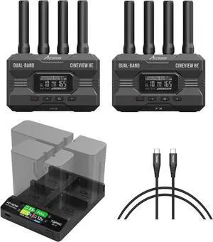 Accsoon CineView HE with NP-F Battery Charger, Wireless HDMI Video Transmitter Receiver, 2.4GHz and 5GHz Dual-Band, 0.06s Latency, 1200FT/350M Range, UVC Live Streaming, Up to 4 Receivers