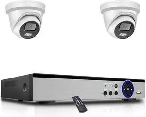 Gadpiparty 8CH CCTV Security Camera System 4K POE NVR Kit Audio Waterproof Indoor Outdoor Dome IP Camera 8mp Color Night Camera Set(None,4CH NVR x 2PCS 2K)