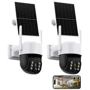 2K 360° View Solar Security Cameras Wireless Outdoor, 2.4g WiFi Cameras for Home Security, Color Night Vision, AI Detection, 2-Way Audio,Siren Alarm, with SD/Cloud Storage