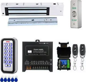 Door Access Control System Kit, RFID Keyboard with Rain Cover, 180/350lbs Magnetic Lock, DC12V Power Supply, 10Pcs 125KHZ ID Keyfobs,Door Safety Switch Applies to Outdoor