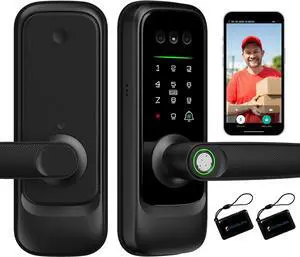 Smart Lock with 2 Lever Handle Set, Fingerprint Keyless Entry Door Lock Front Door App Control, Electronic Touchscreen Keypad Deadbolt, Auto Lock, IP54 Waterproof, Easy Install Built-in Doorbell