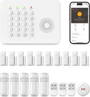 Wireless Home Alarm System 15-Piece Kit, WiFi Alarm System for Home Security with Phone APP Alert (Alarm Siren, Keypad, Remote, Motion, and Door Sensors) for Home, Apartment, Work with Alexa