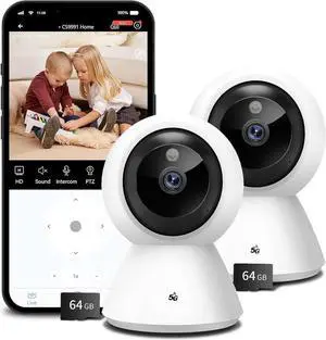 5ghz WiFi Security Cameras Indoor Pan/Tilt, 2K HD Pet Camera, Motion Detection for Baby Pet Monitor, Support for 5G/2.4G Wi-Fi, 2-Way Talk, Night Vision, Home Cam with 64G SD Card 2-Pack(CS991)