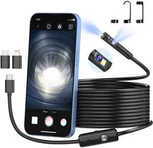 BlueFire Upgraded Endoscope Camera with Light, 1920P HD Borescope, 16.4ft Semi-Rigid Snake Camera for Android and iOS Smartphone, Tablet, Black, IP67 Waterproof