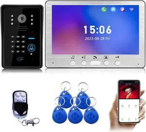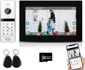 2 Wires Video Door Phone intercom doorbell System, 7 Inch Touch Screen Monitor, 1080P, Remote Unlock, Human Detection, Two-Way Audio, Night Vision, Waterproof, RFID Access Control