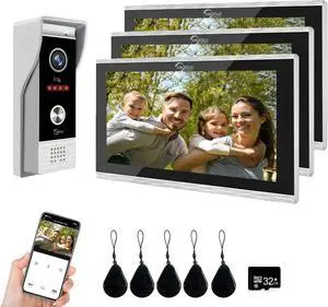 Wired Smart Video Apartments Intercom System,10 Inch Monitors with 1080P Doorbell Camera,3-in-1 Unlocking,TUYA WiFi Door Phone Kits, Ideal for Villas & Homes (1 doorbell + 3 Monitor)