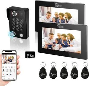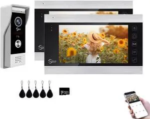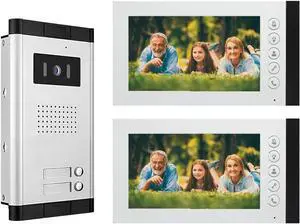 Video Door Phone Apartment Intercom,2 Units 7 Inch Touch Monitor with Wired 1080P Doorbell System,Supporting Fingerprint,RFID Card,Password Motion Detecting for Home,Tuya 32G