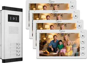 Wired Video Apartment Intercom System,2/3/4/5/6/8/10/12 Units Family 7 inch Monitor Video Door Phone Kit,Indoor Outdoor Video Doorbell,2 Way Audio for Home (1 Doorbell + 4 Monitor)