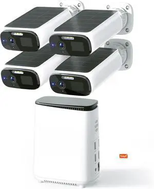Tuya Smart APP Solar Security Cameras Wireless Outdoor, 5MP Color Night Vision, Solar Powered, Expandable Local Storage ,AI Cameras for Home Security System (4-Cam Kit)Not Include SSD/HDD/TF