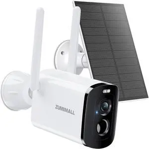 ZUMIMALL Solar Security Cameras Wireless Outdoor, 2K Camera for Home Security with 3MP Color Night Vision, 2.4GHz WiFi, 2-Way Talk, Spotlight & Siren, IP66 Weatherproof, Compatible with Alexa