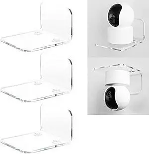 SIPRDE Acrylic Small Wall Shelf Set of 3 for Security Cameras, Speakers, Baby Monitors & More - 4'' Universal Adhesive Shelf Easy to Install No Drill, with Cable Clips (Clear)