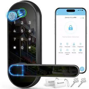 Fingerprint Smart Door Lock with Handle & Keypad  Bluetooth Keyless Entry for Front Door, Home, Kids, Guests, Airbnb & Rental, App + Code Access, Compatible with Alexa & Google, Easy DIY Install