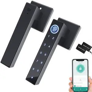 Fingerprint Door Lock with 2 Lever Handles - Keyless Entry Door Lock, Electronic Keypad Deadbolt, Digital Smart Code & Front Handle Sets, Auto-Locking, Easy Installation, Matte Black