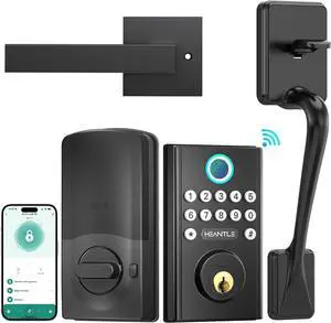WiFi Front Door Lock with Handle HEANTLE Keyless Smart Lock Set Entry Door Locks Keypad Fingerprint Deadbolt Handleset Alexa Compatible Auto Lock App Remote Control